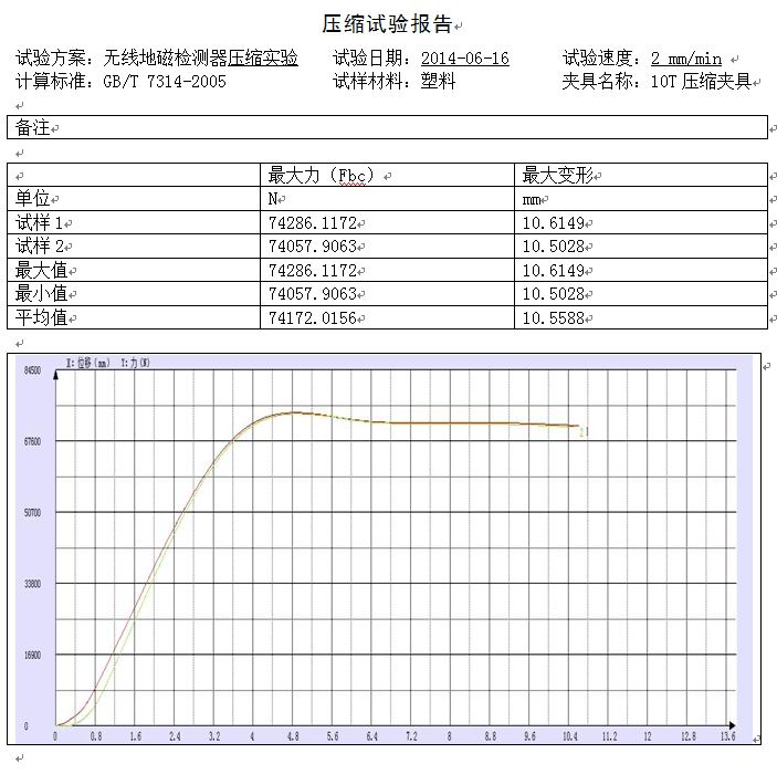此次該客戶委托我司做的是無(wú)線地磁檢測(cè)器壓縮試驗(yàn),試驗(yàn)得出的相關(guān)數(shù)據(jù):